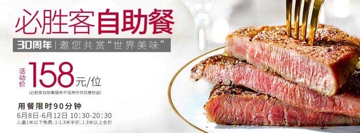 今年是必胜客·中国30周年,本月特别推出了158元全品类自助餐,几乎涵盖全国所有门店,且数十款经典美食畅点畅吃畅饮!听起来还是十分诱人的,不过这次自助餐时段有限,仅限本周(6月8日-6月12日),只有五天的时间,想去尝试的伙伴们可以抓紧了哦。