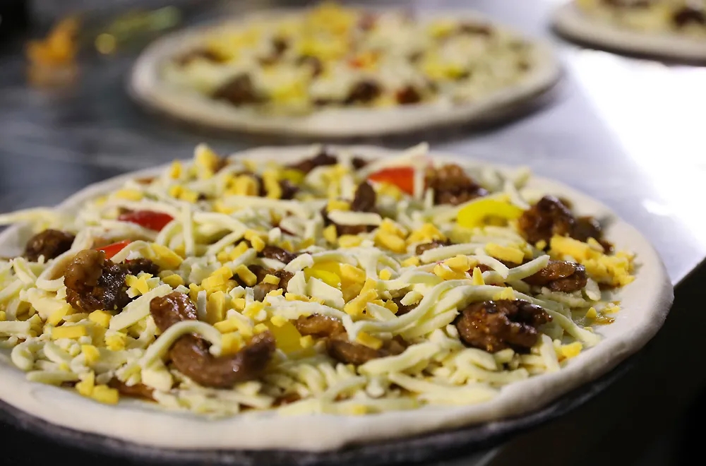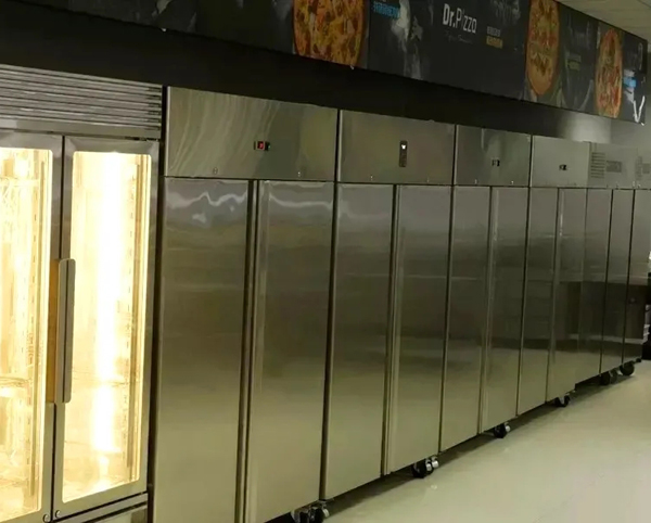 日消食材存放 西餐披萨店除了冷藏冷冻冰箱,还需配备带有制冷功能的配料/撒料台,用于存放日消耗原材料(如已制备好的食材、酱汁等),便于快速取用。日常上下班需及时清洁处理掉落的食材、酱汁,保持干爽洁净。