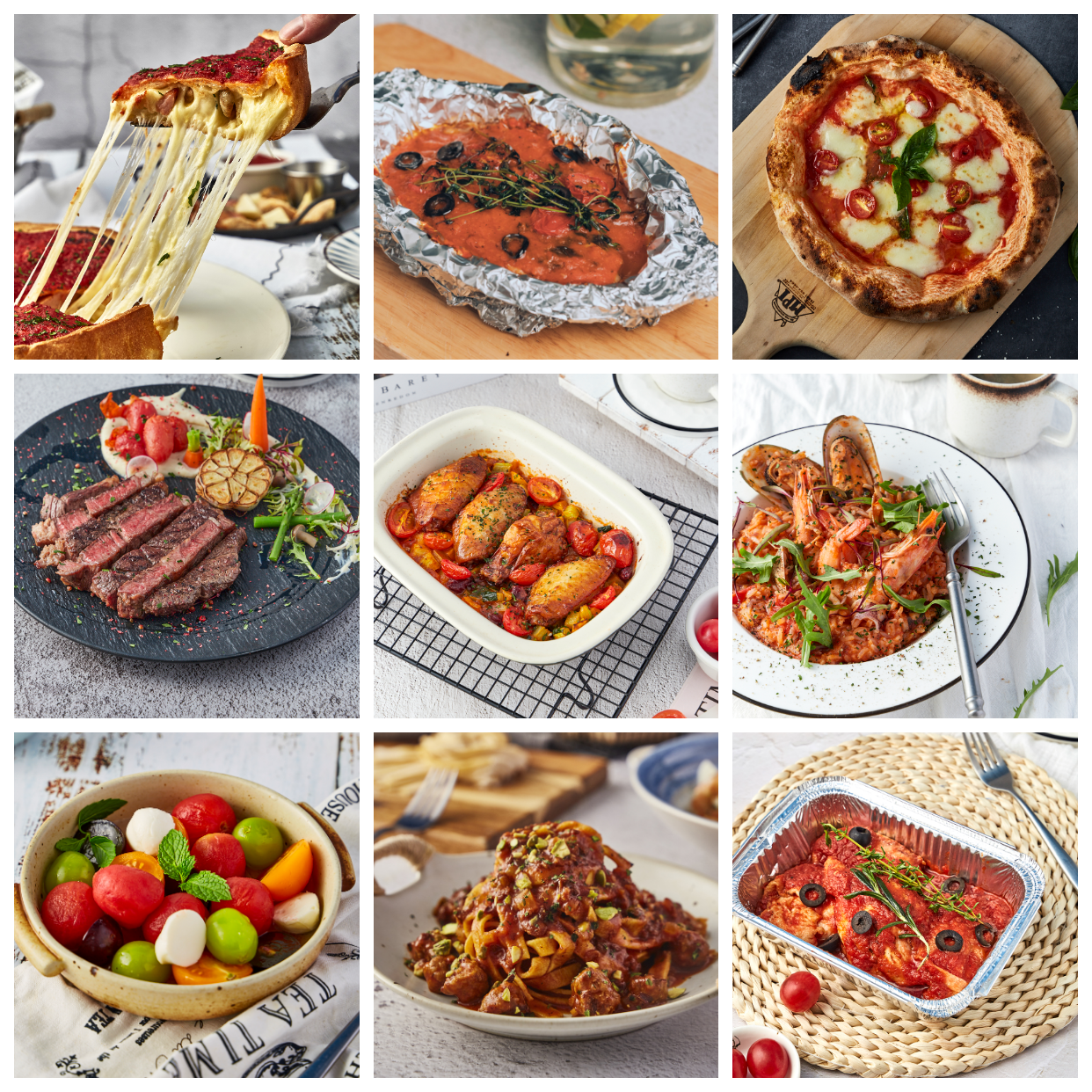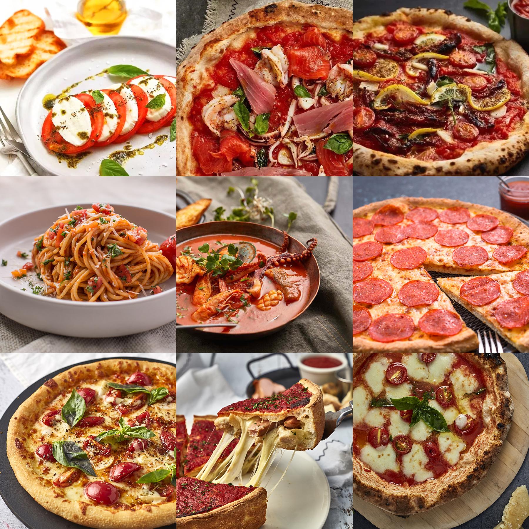 融入番茄的众多西餐料理,有很多已成为流传甚广的经典番茄料理,比如玛格丽特披萨、马瑞娜娜披萨、番茄海鲜披萨、番茄意大利面、肉酱意大利面、番茄水牛色拉(卡布里沙拉)、番茄海鲜汤等。