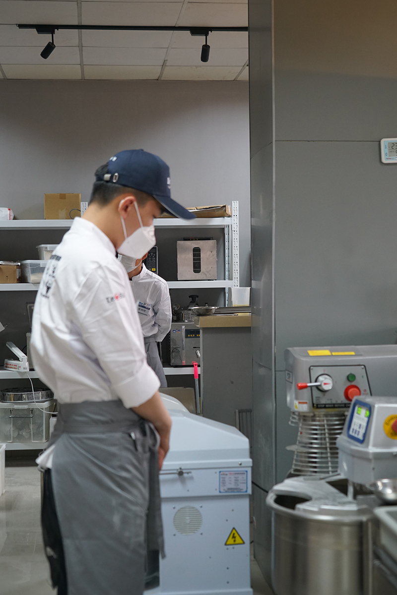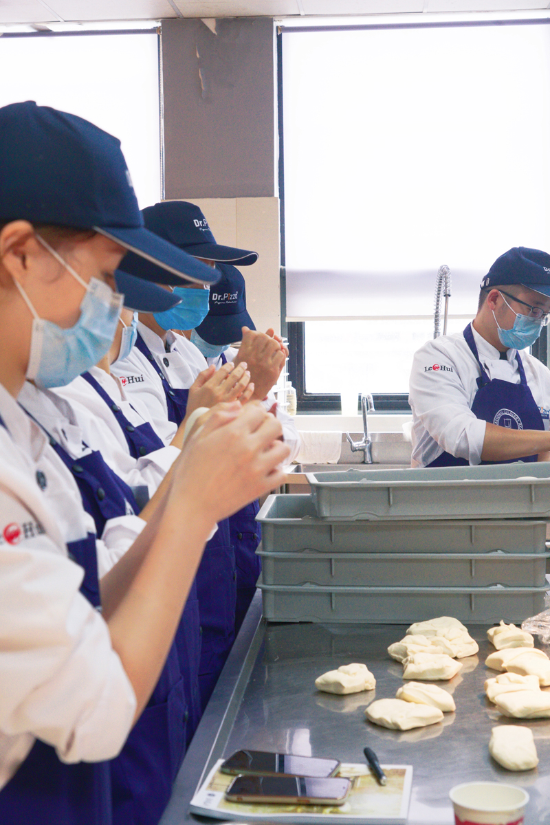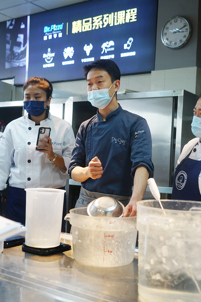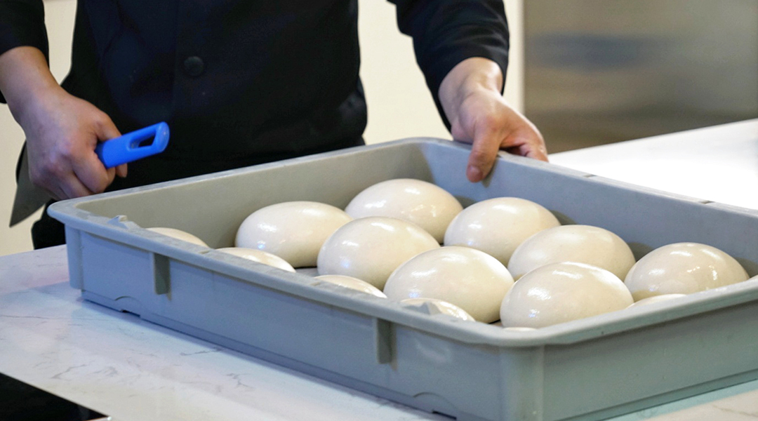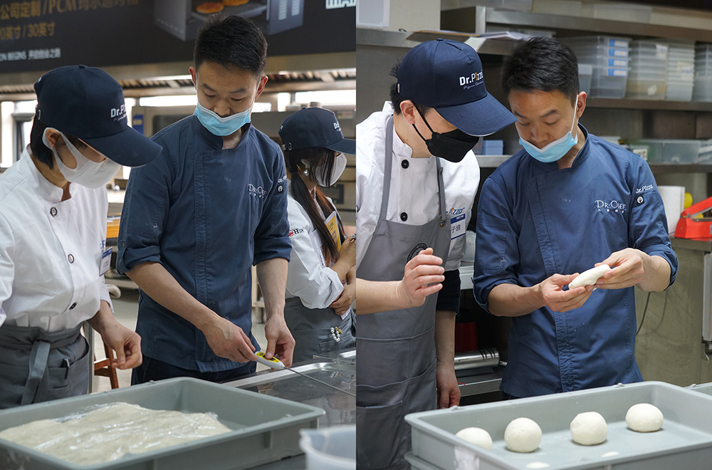 比如夏天冰水混合物不能放置过久,冰块也不能过多过大;比如分切揉圆放入动作要轻盈快速,不要让手心温度影响面团。