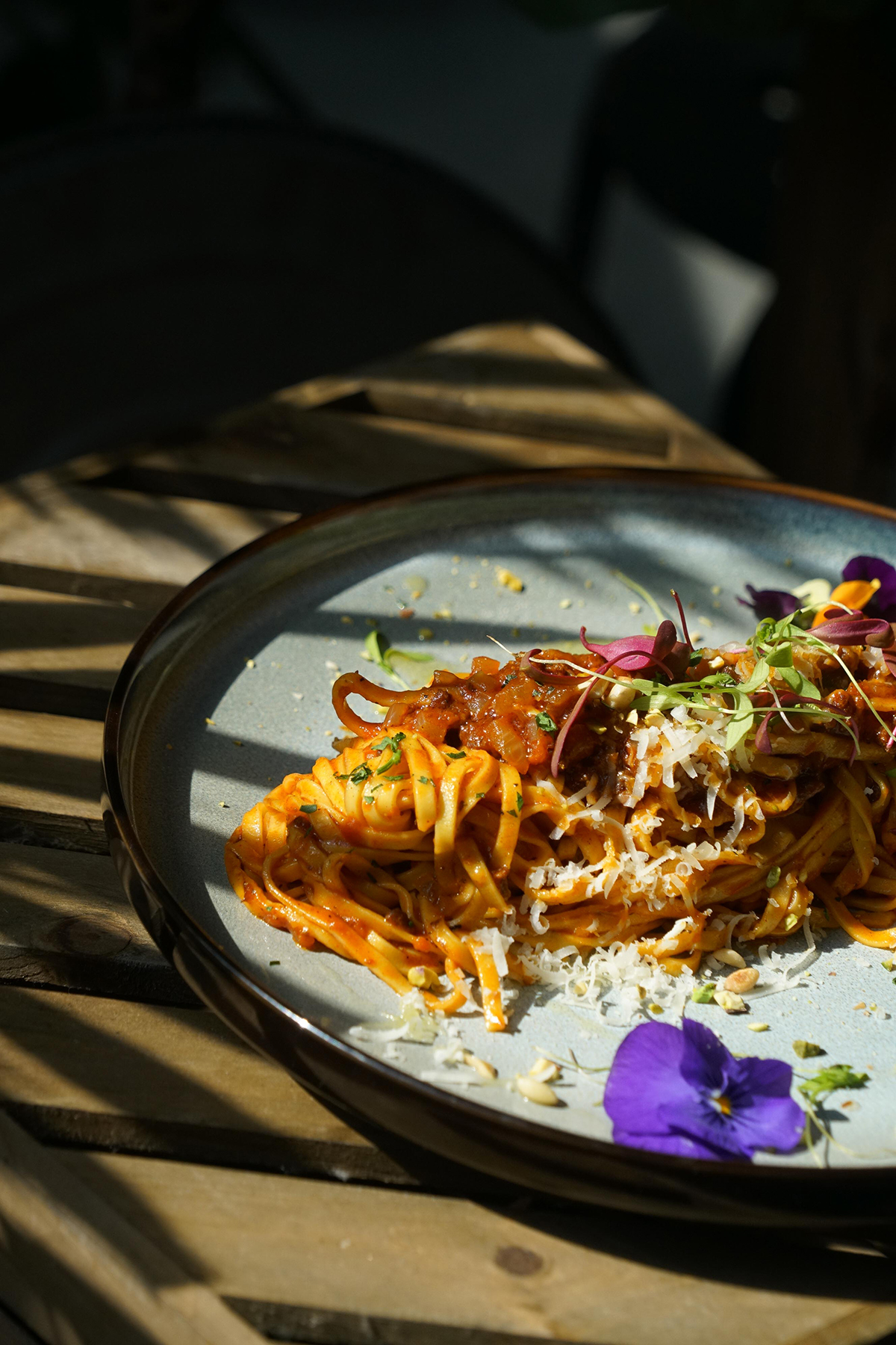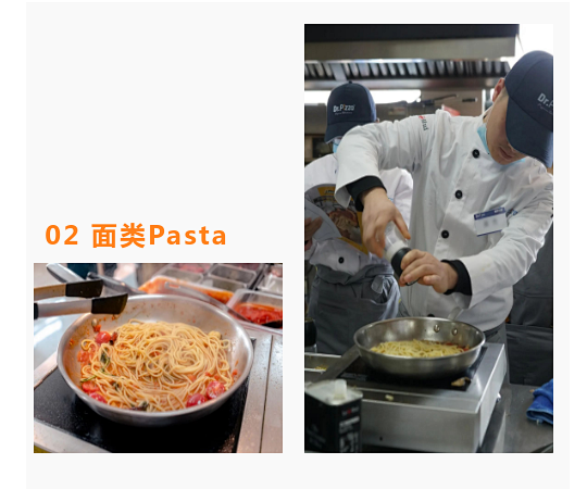 意大利面的烹制流程不算复杂,提前烹煮至七八分熟,沥水备用。各式食材(蔬菜、肉、海鲜等)和酱汁也都可提前制作备用。开门营业时便可即点即做,数分钟即可完成制作,出餐速度非常快。