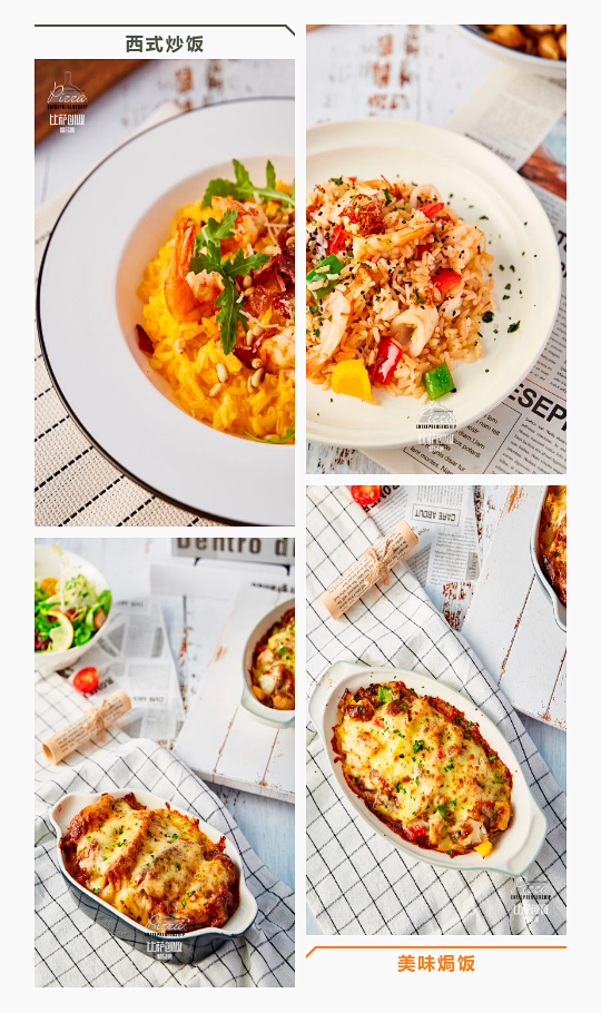 对于我们西餐披萨店来说,手作披萨自然是门店的主营产品。而除此之外,我们还可上架多款高颜值、高逼格且出餐速度较快的高人气美味主食。