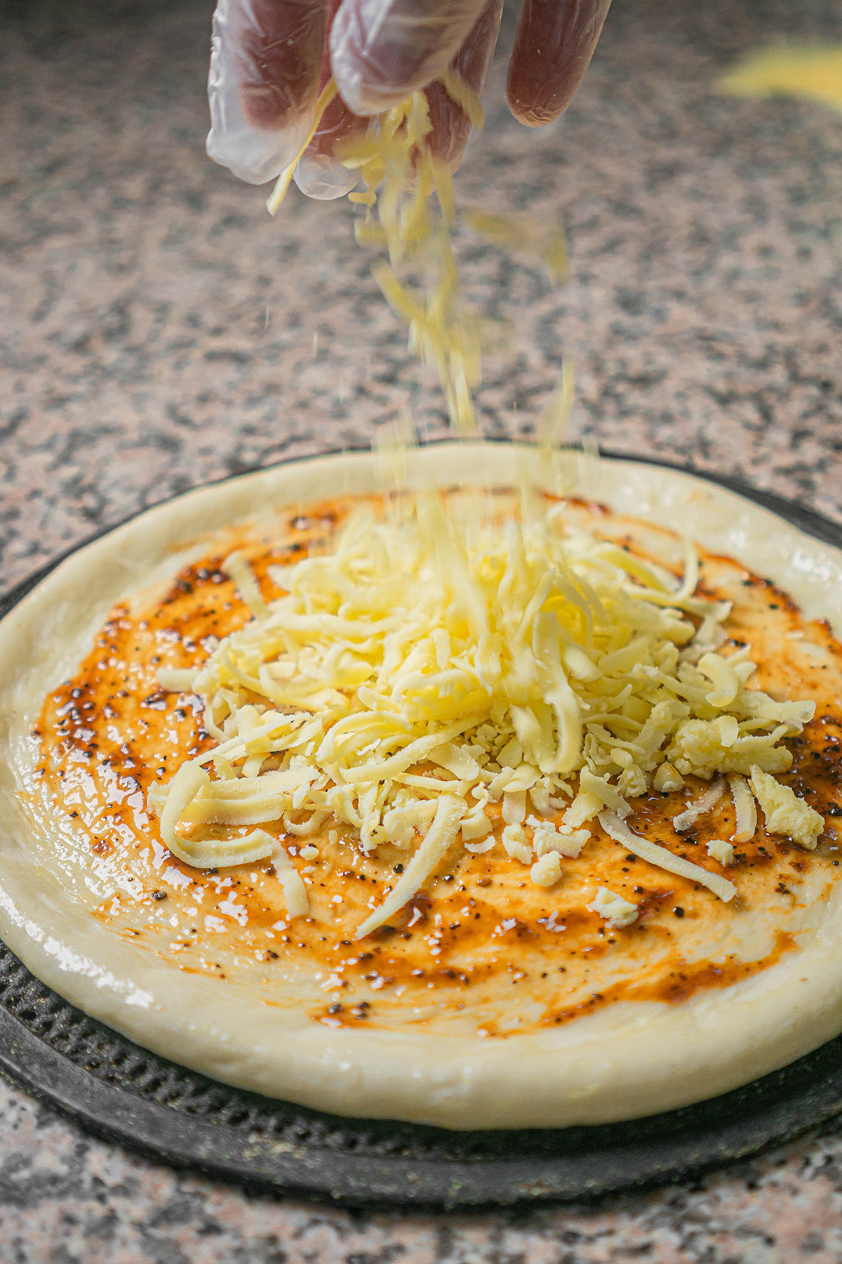而这一切顾客都看在眼里:不是提前预制的冰冷饼胚,也不是机器压模成型的完美圆形。手工成型的饼底自带温度和巧思,除了经典圆形,还可制作成方形、心形、船形、圆环形、双层等不同的造型,每一款都带着手作的独特印记。