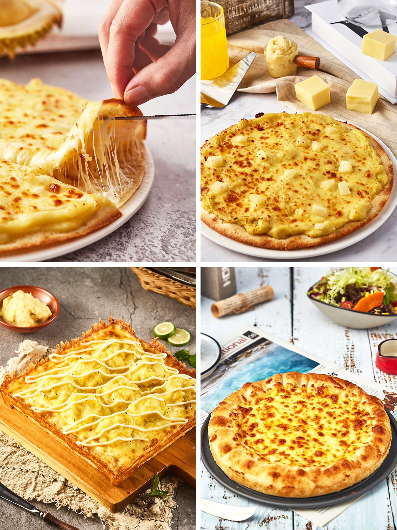 此外,顶料搭配可将单一浓香升级为复合风味。马苏芝士、帕玛森芝士及奶油奶酪等为关键搭配,既能锁住榴莲香气,奶香又与甜香互补。烘烤分切后,亦可点缀冻干芒果丁、烤杏仁碎、烤腰果碎、椰片、椰丝等,口感叠加更具层次。