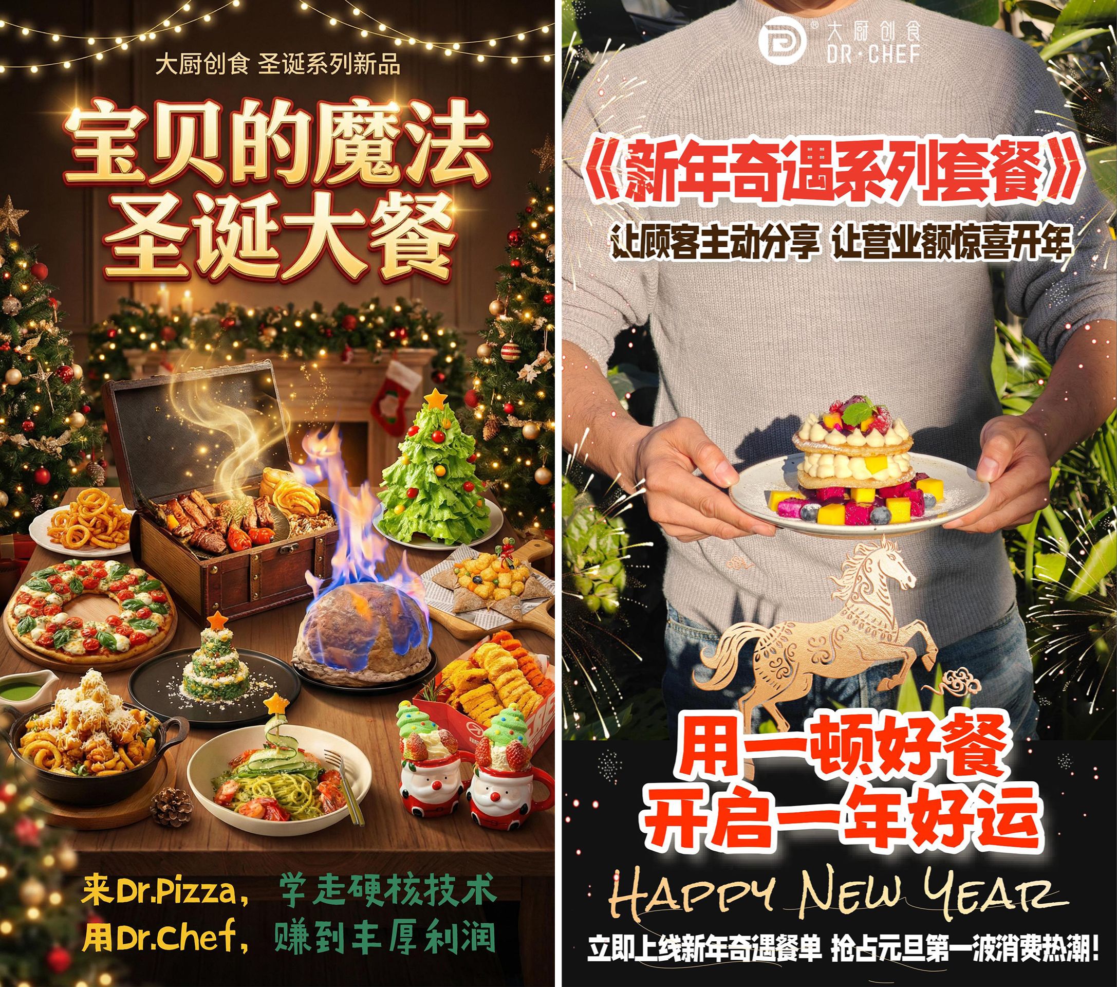 🎄圣诞氛围正浓,✨元旦紧随其后!双旦狂欢季来袭,各位学员客户伙伴们,若您的门店还未敲定高颜值、仪式感拉满的节日限定新品,抓紧最后时间私信对接老师。一键领取双旦全套限定新品方案,营销美图、短视频及菜品SOC全含,快速上架爆款高颜值菜品,帮你赚足人气和营收!