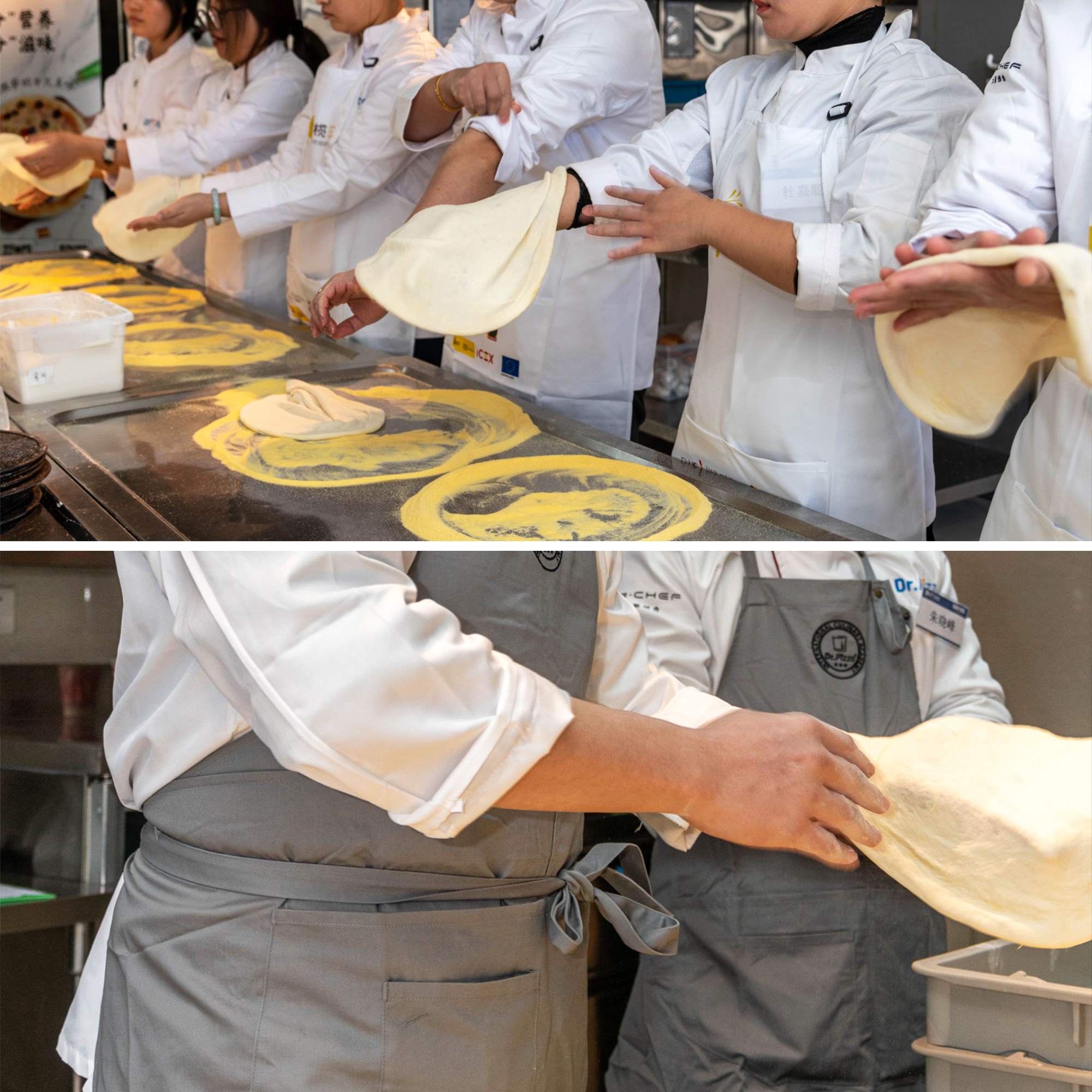 历经专业技术培训和肌肉记忆强化训练,优秀的职业披萨师可做到读秒开皮,且饼皮厚薄均匀、规整不破。愿大家都能早日练就一双会跳舞的披萨手,做出属于自己的完美披萨!
