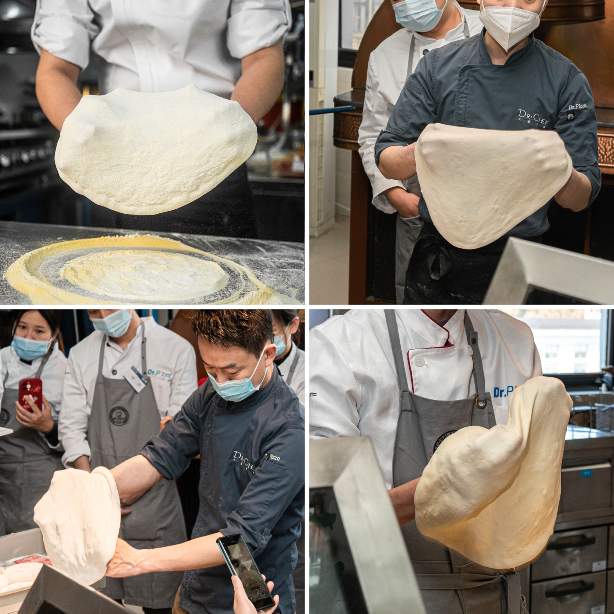 特别提示:为确保饼皮完整性,各位小伙伴们在练习开皮前,请记得先修剪指甲。此外,制作手工披萨时,为提升出品效率,需将多个手法交替搭配使用,一名合格的职业披萨师应熟练应用多种开皮技法手法。