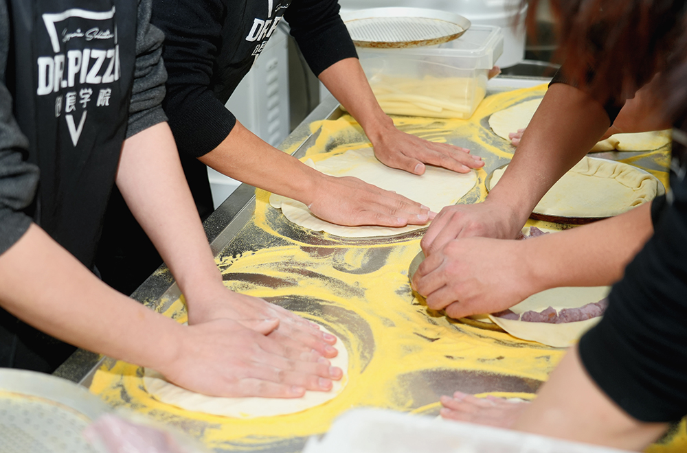 打好扎实功底后再深耕进阶技巧,专项练习更具特色的开皮成型手法,提升开皮动作的美观度和观赏性,如此便能适配门店全品类披萨的制作需求,更能为开放式厨房打造吸睛亮点,牢牢抓住顾客目光,彰显品牌硬核实力。