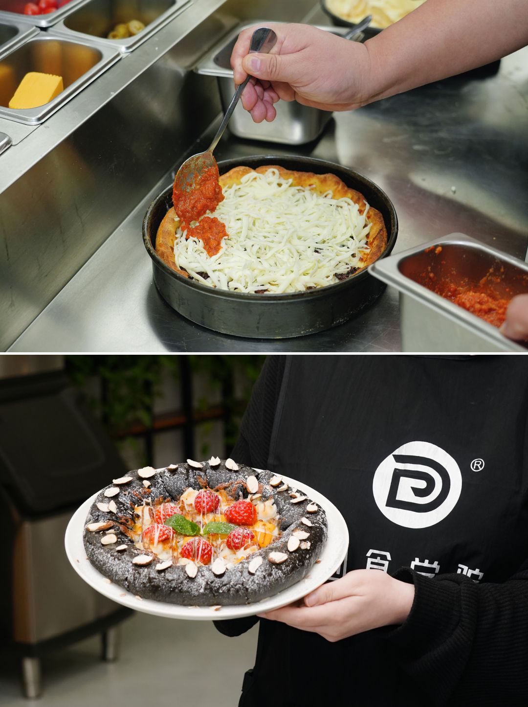 比如同款披萨(同款饼底、酱汁和顶料),用不同烤炉设备搭配不同温度与时长,烘烤出来的风味与品相会有明显差异(或更松软、或酥脆、更柔韧等),带给顾客截然不同的新鲜感。