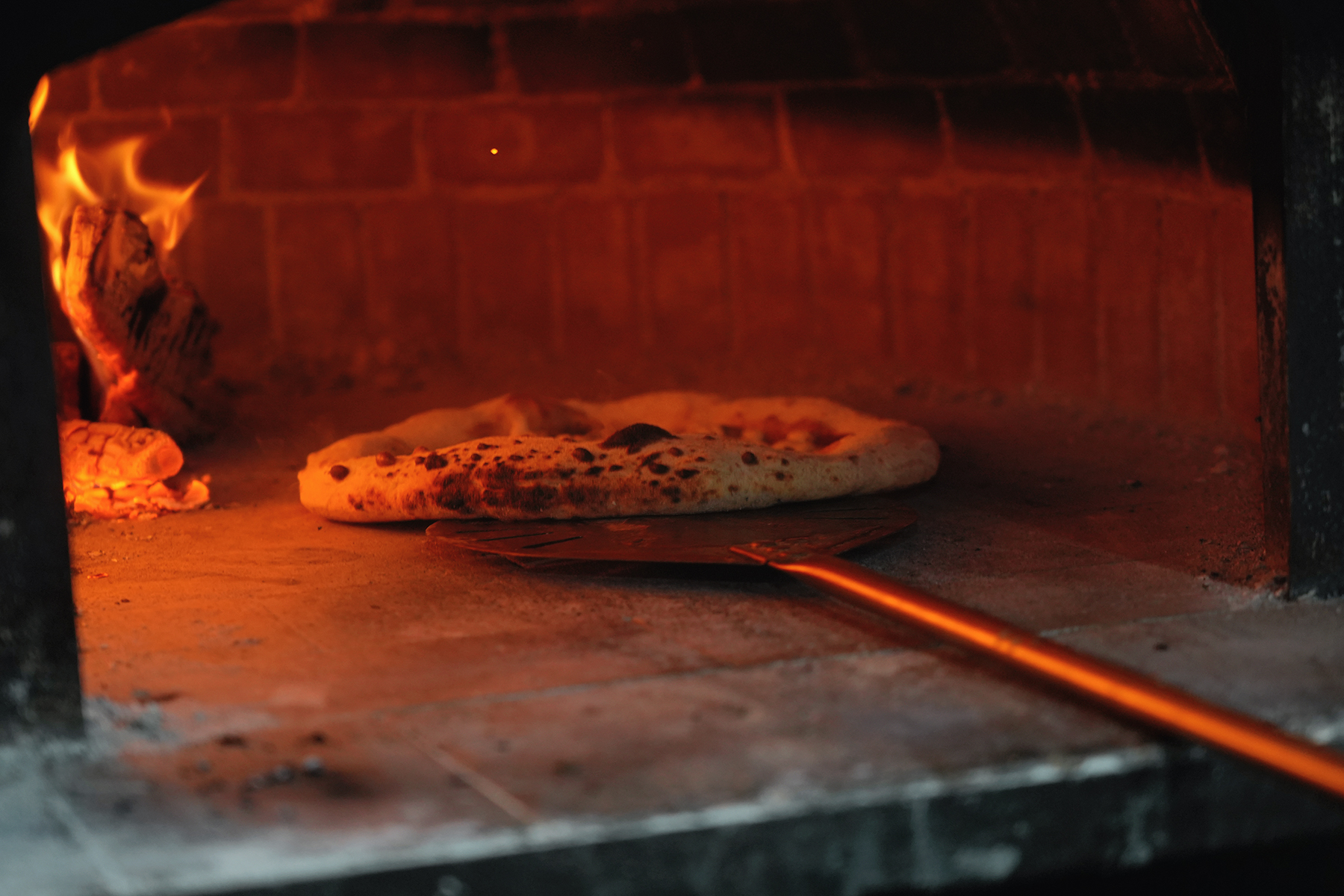 因此,明火窑炉对披萨师傅的技艺要求极高,需精准掌控火候(火焰颜色、灰烬状态和炉温)、披萨位置与旋转时机,这非常考验披萨师的手上功夫。