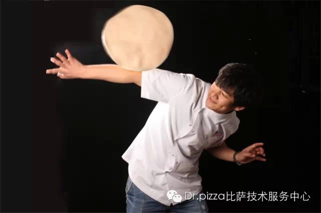 披萨,虽说是舶来品,但也已经很普遍了。相信很多人都吃过披萨,不少人还是披萨的忠实粉丝。可是在一饱口福的同时,你有没有想过,手中拿着的披萨饼是怎么做出来?用冷冰冰的机器压出来的?用擀面杖擀出来的?还是“人有两件宝,双手和大脑”,圆圆的披萨饼是用两只手搓出来的?好吧,这大概也就是我们一般人所能想到的方法了。事实上,用上面这些方法确实都能做出披萨饼来。市面上吃到的披萨饼大致也不外是通过这几种方式制作的。但是,真正帅气的披萨饼,应该是“飞”出来的!