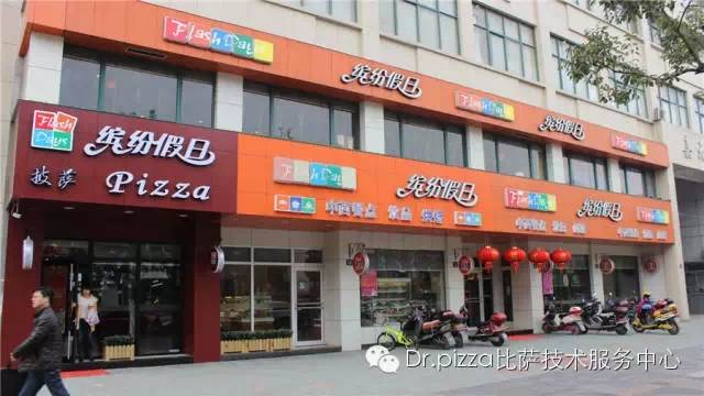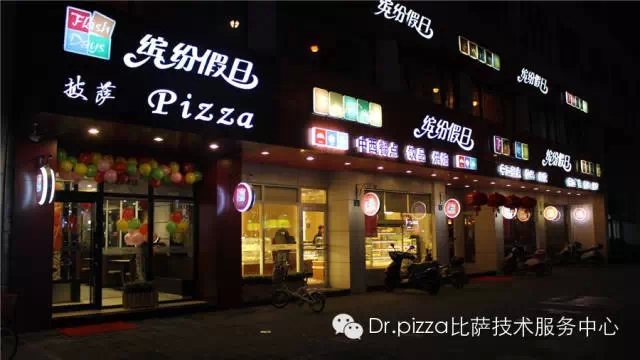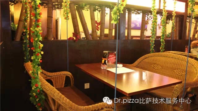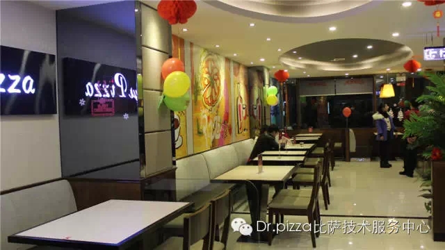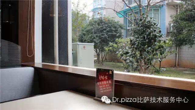 缤纷假日披萨(Flash Days Pizza)是缤纷假日新增的项目,也是Dr.Pizza的大客户建店项目。用餐区呈倒L型,进门便是大通道,靠墙设着一溜粉白的桌椅,走到尽头右拐,就是另一片安静的用餐区,窗外就是小区,绿荫杂陈,柔和的光线透过干净的玻璃漫到餐厅里,能让人的心绪不自觉地就放松下来。