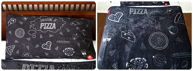 不过小编认为呢,虽然整个系列的设计都带有浓烈的搞笑感,但喜欢披萨的朋友们应该还是挺喜欢的。比如那枕套、被单就还挺简约的,T恤也没有太花哨,除了诙谐幽默的文字外,感觉都还OK啦!