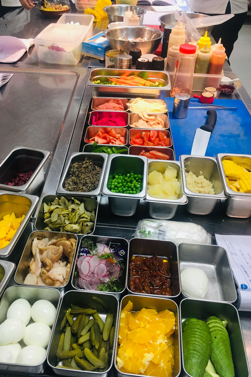 温馨提示:对于生食的沙拉菜一定要注意保持好的卫生环境,操作人员的手部、相关器皿、刀具、揩布等都要清洗干净。不要只顾着去除沙拉菜中的细菌污染,而忽视了环境因素。
