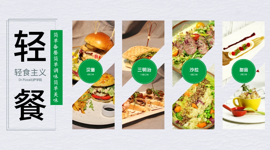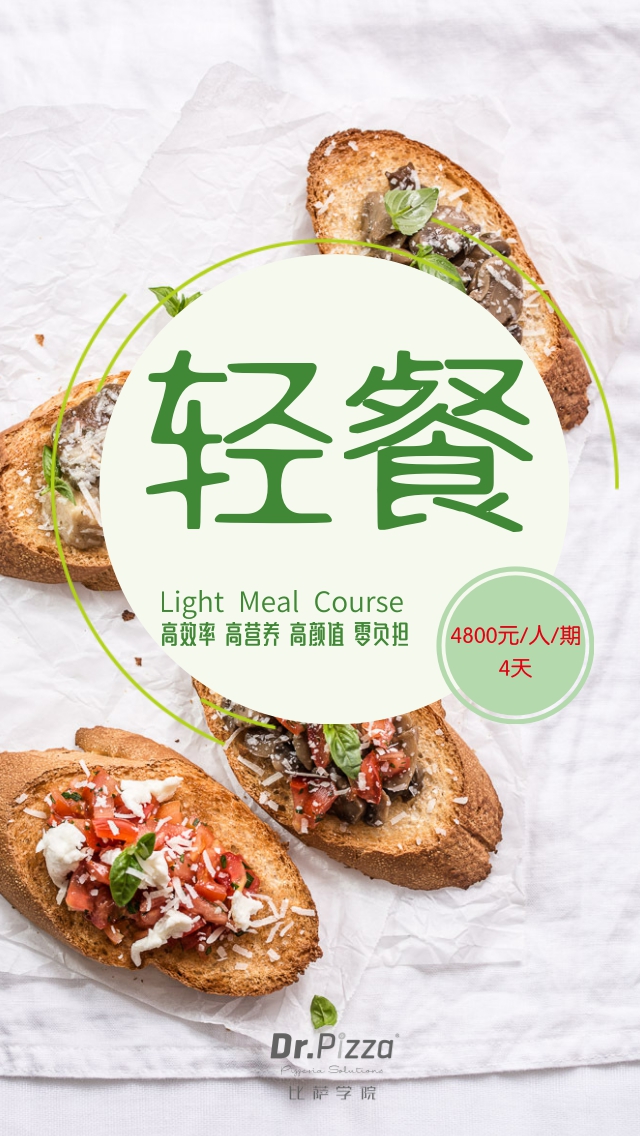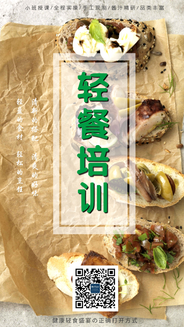 为了帮助广大学员伙分到轻餐市场的一杯羹,帮助大家丰富门店产品体系,拓展店铺多元化经营渠道,2018年起,专注于披萨西餐教学多年的Dr.Pizza,顺势推出了全新的短期课程——轻餐料理班
