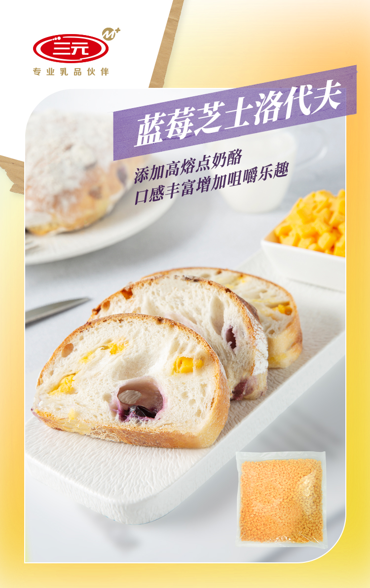 三元食品奶酪系列产品已陆续完成产品升级及包装变更。旗下奶酪产品众多,性能优越,规格多样,可满足餐饮行业不同渠道(家庭、企业、门店、工厂等)的应用需求。