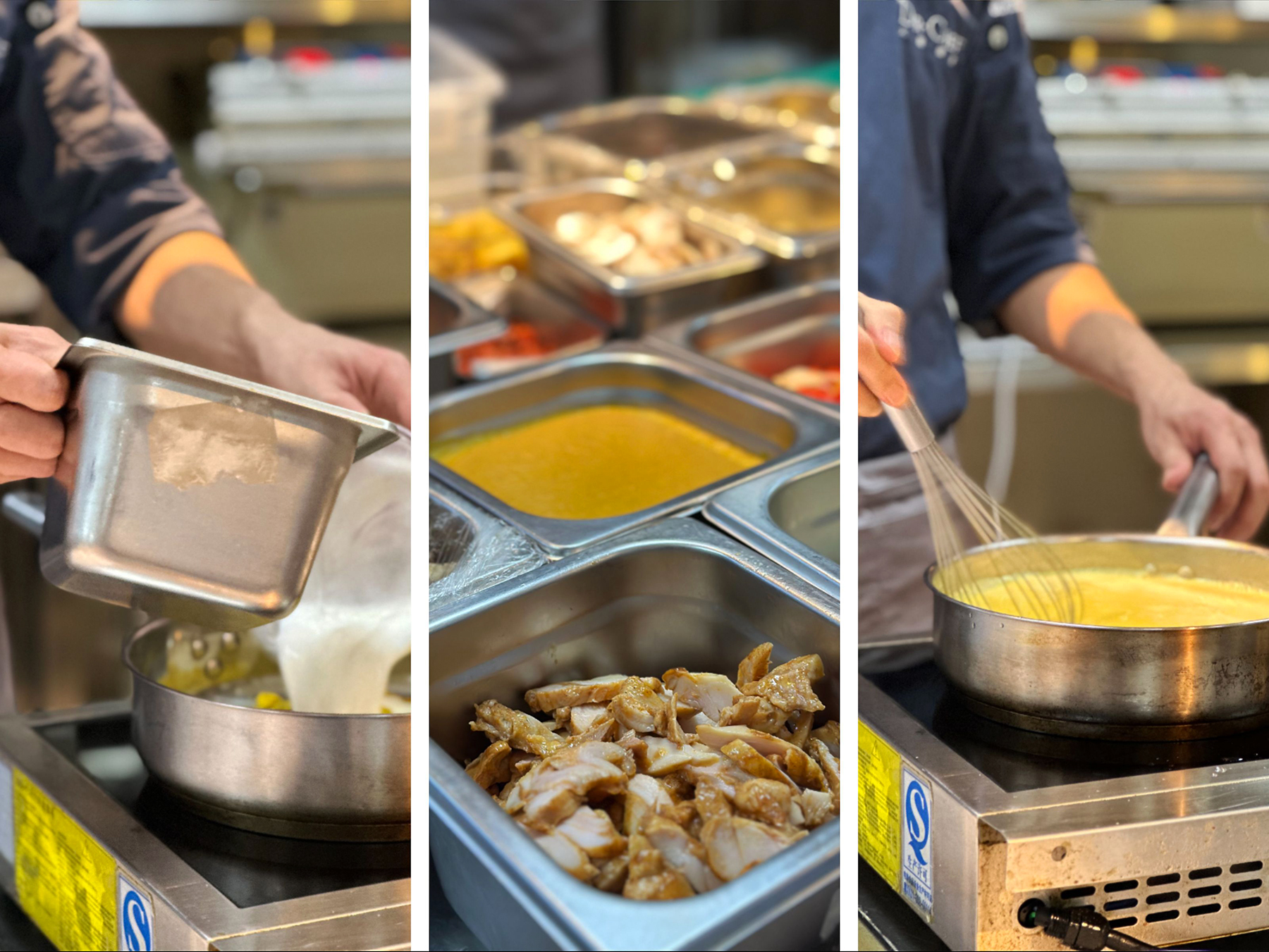 酱汁太咸时,可优先考虑稀释法,加入少量原味高汤、牛奶、椰奶(适配咖喱基底酱料)、奶油奶酪或番茄制品(纯番茄酱、碎番茄)等,通过增加基底量降低咸度。