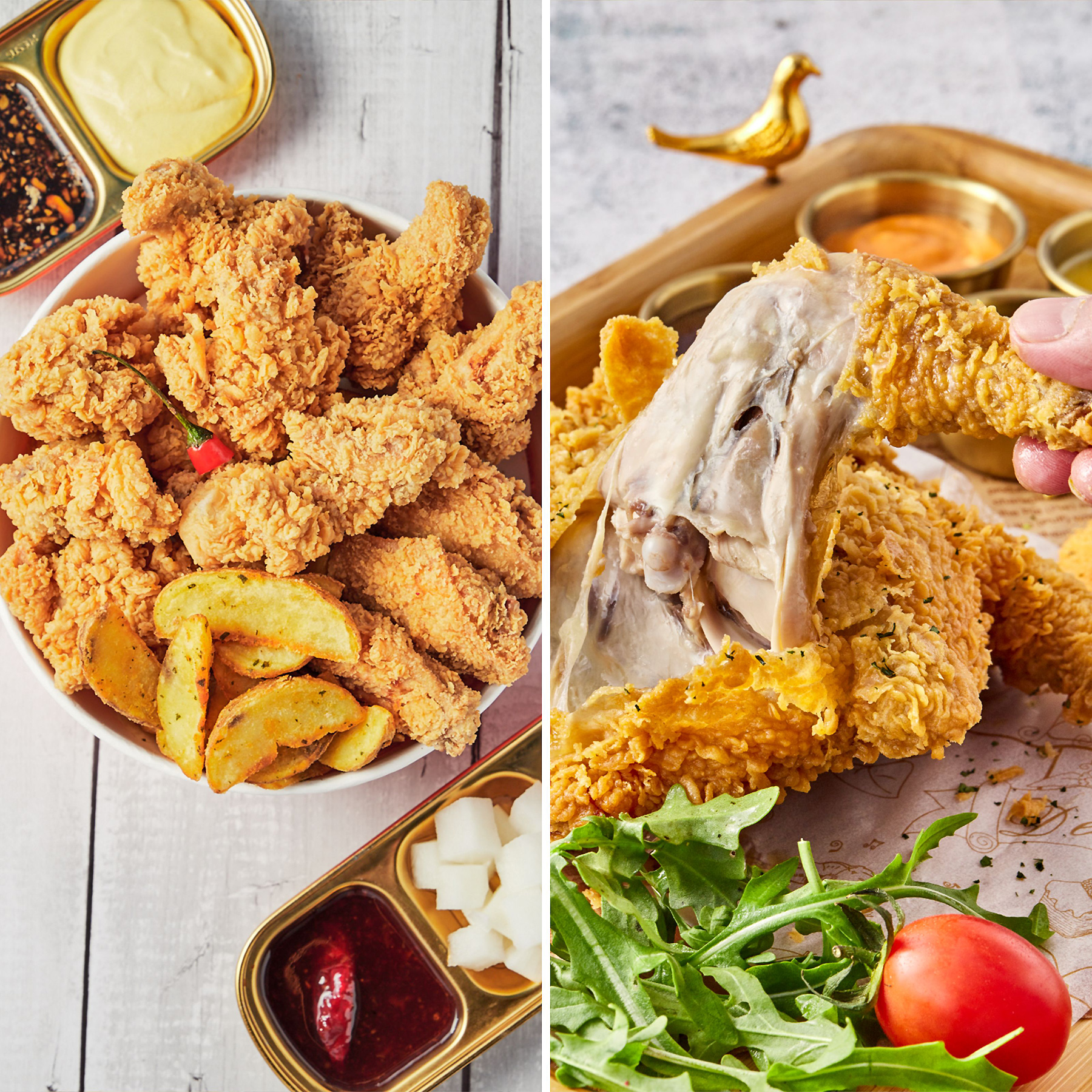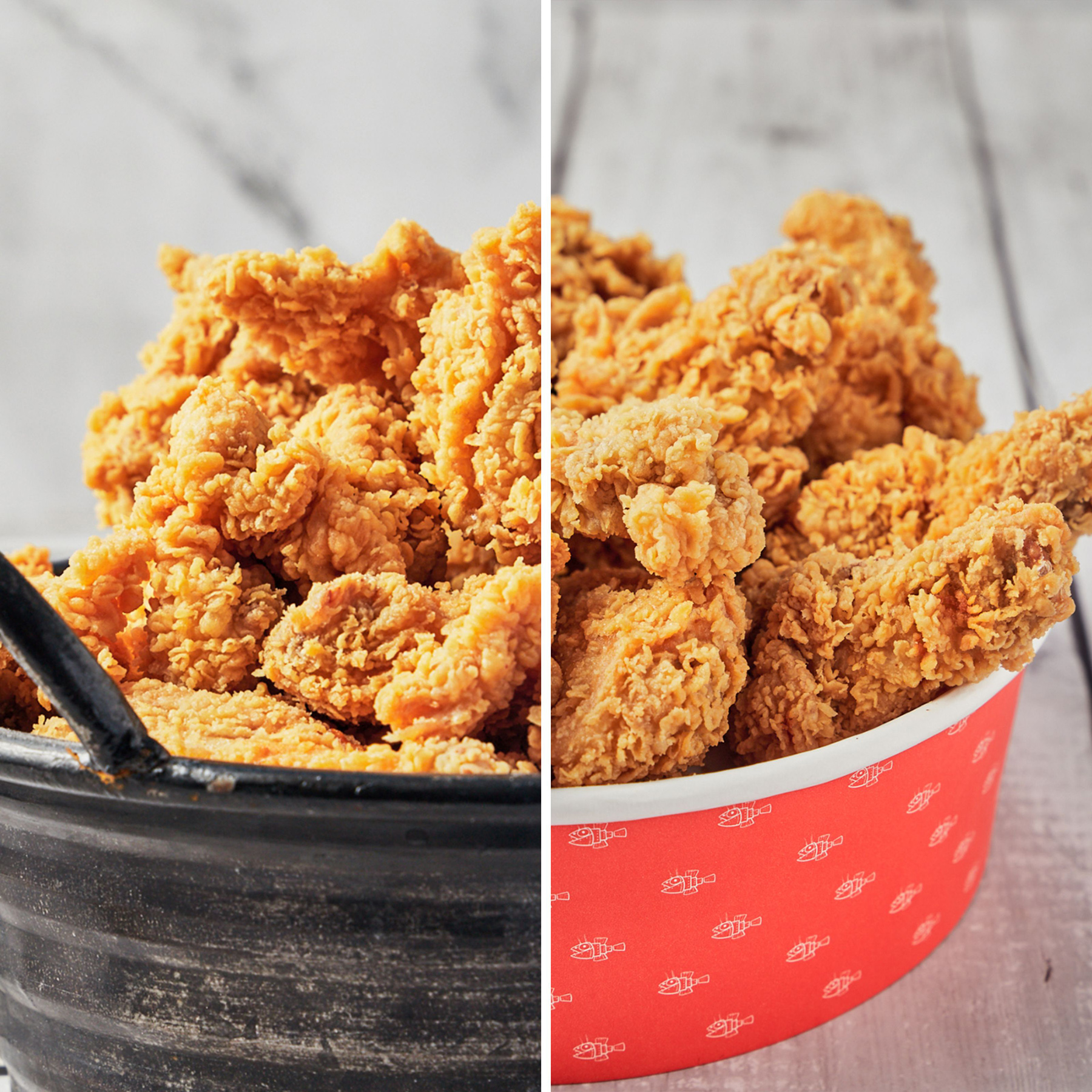 轻薄裹浆技术打造薄脆均匀外壳,入口酥脆轻盈,既能锁住肉汁、凸显鸡肉原香,又契合健康饮食趋势(低油不厚重)。而酥脆裹粉工艺通过专用粉料与多层裹粉手法,形成多孔隙的黄金鳞片状外壳。入口咔滋酥响,与柔嫩多汁的鸡肉形成层次鲜明的口感体验。