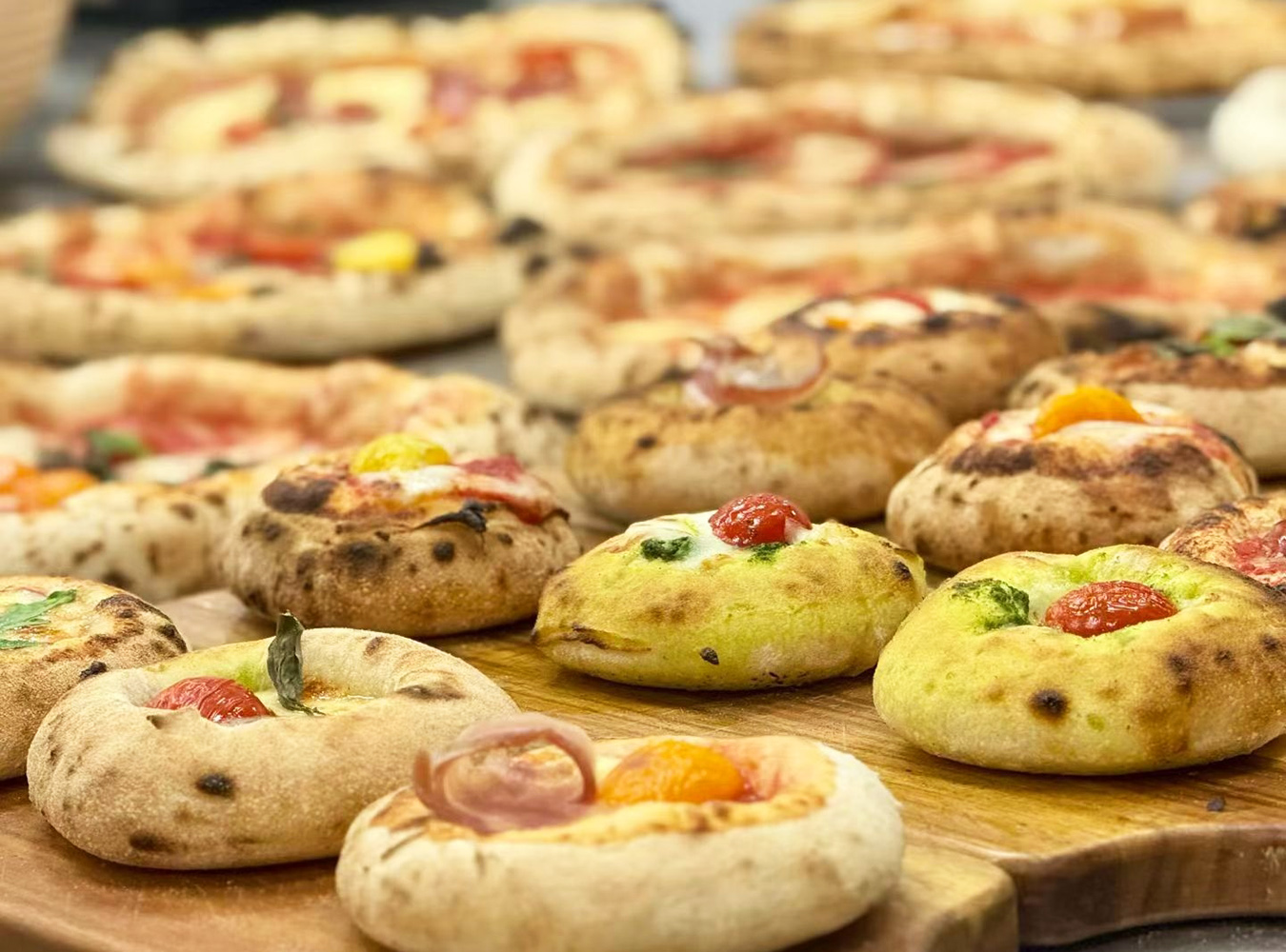 披萨顶料可做轻量升级,对辅料做加减法,以优化关键口感。比如减少太咸太腻的配料用量,增添辣椒段、小番茄、烤培根等丰富口感层次的食材。同时,将普通芝士替换成原制马苏或升级混合芝士,整体风味立刻提升。
