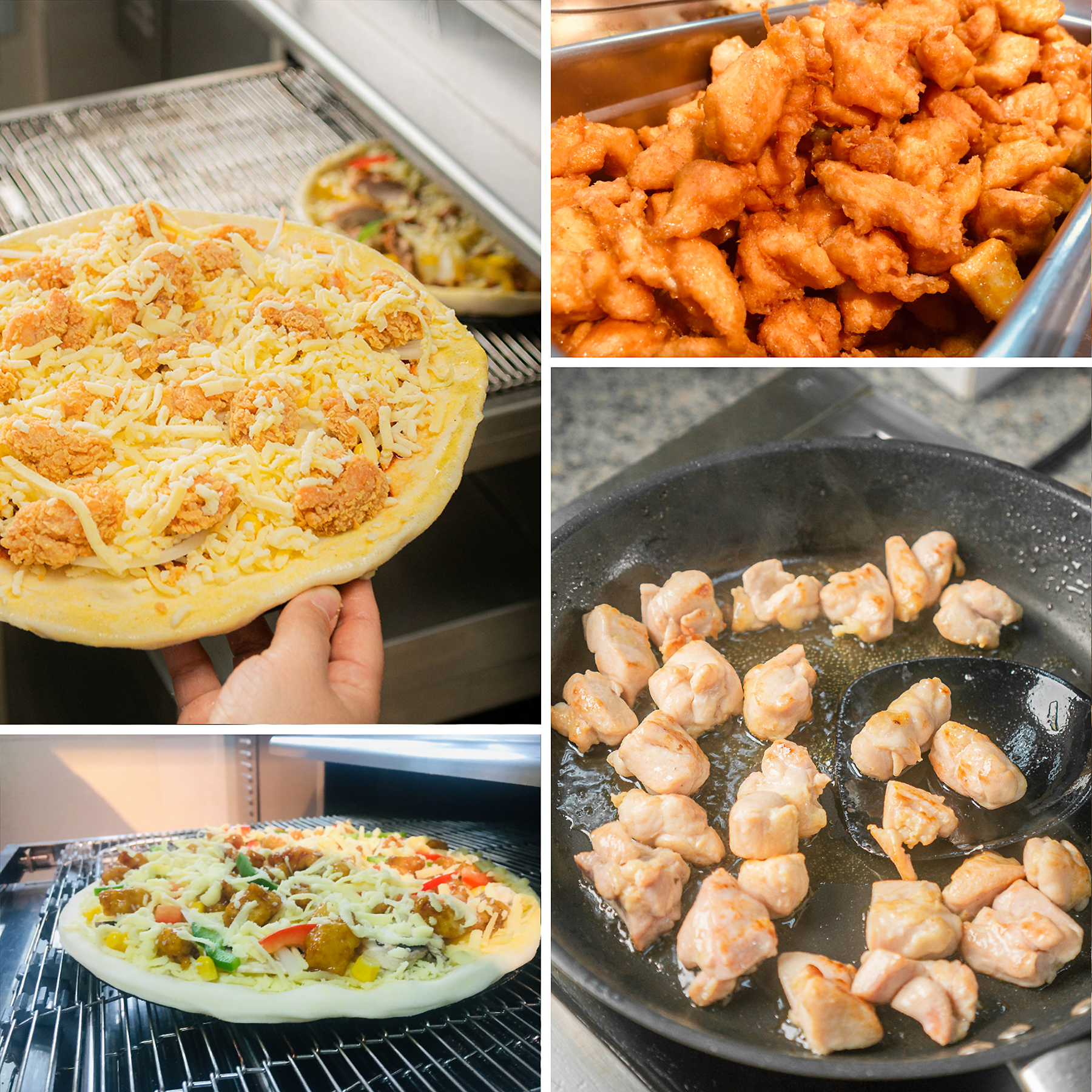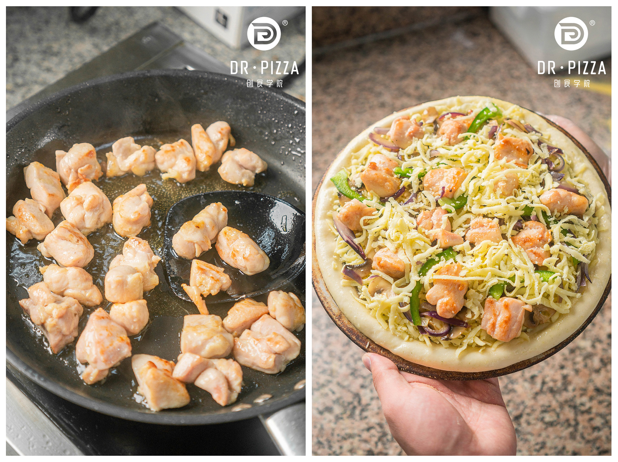 而适配的烹饪方式可优化最终质感,煎/烤方式能更好锁住肉汁并产生诱人的焦化层。如果是大块鸡肉,预烹饪能确保披萨整体成熟度一致,也能避免鸡肉在长时间高温烘烤中过度失水。