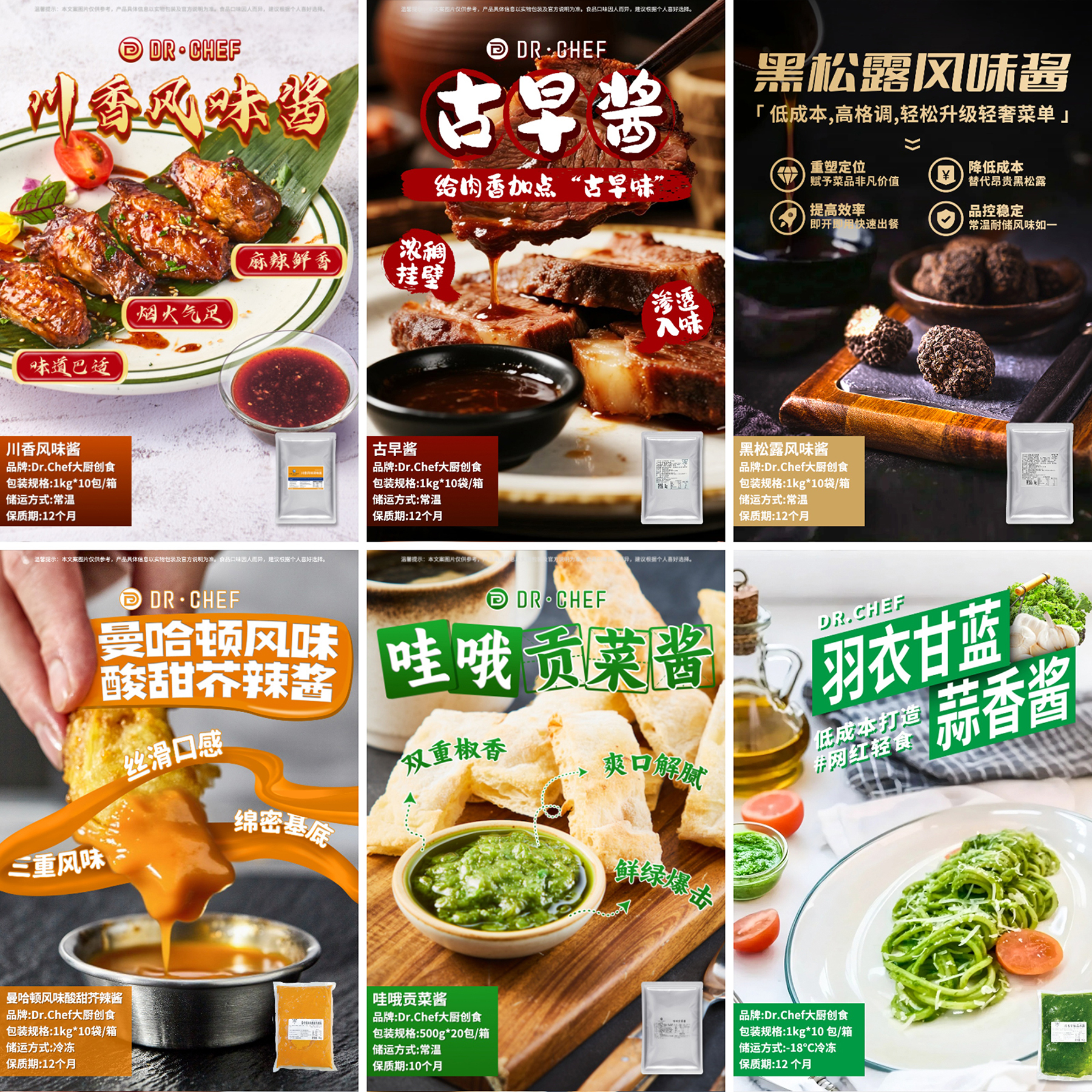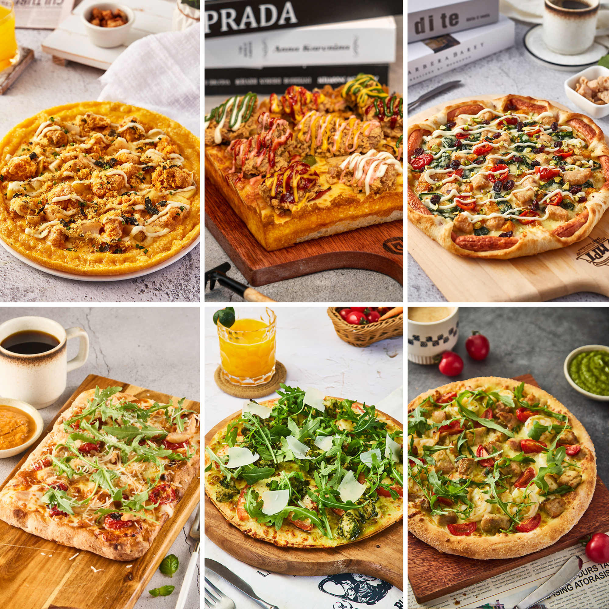还有清香解腻的羽衣甘蓝酱、绵密开胃的酸甜芥辣酱、咸鲜浓稠的古早风味酱、菌香馥郁的黑松露酱、奶香浓郁的白酱、咸鲜带辛的黑椒汁等,每一款都能与鸡肉完美契合。巧用这些特色酱汁,让每一口都成为跨越风味疆域的惊喜之旅,让经典鸡肉披萨焕发百变魅力!